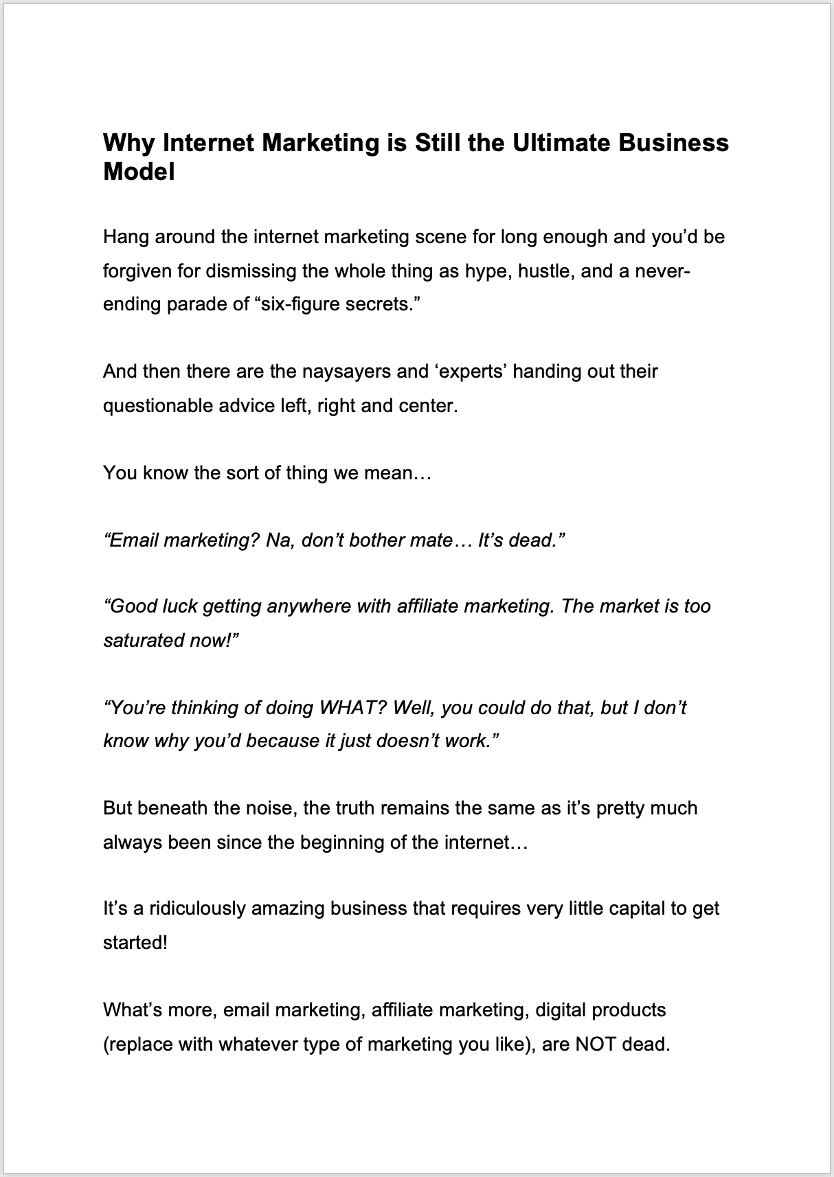 Dear fellow marketer,